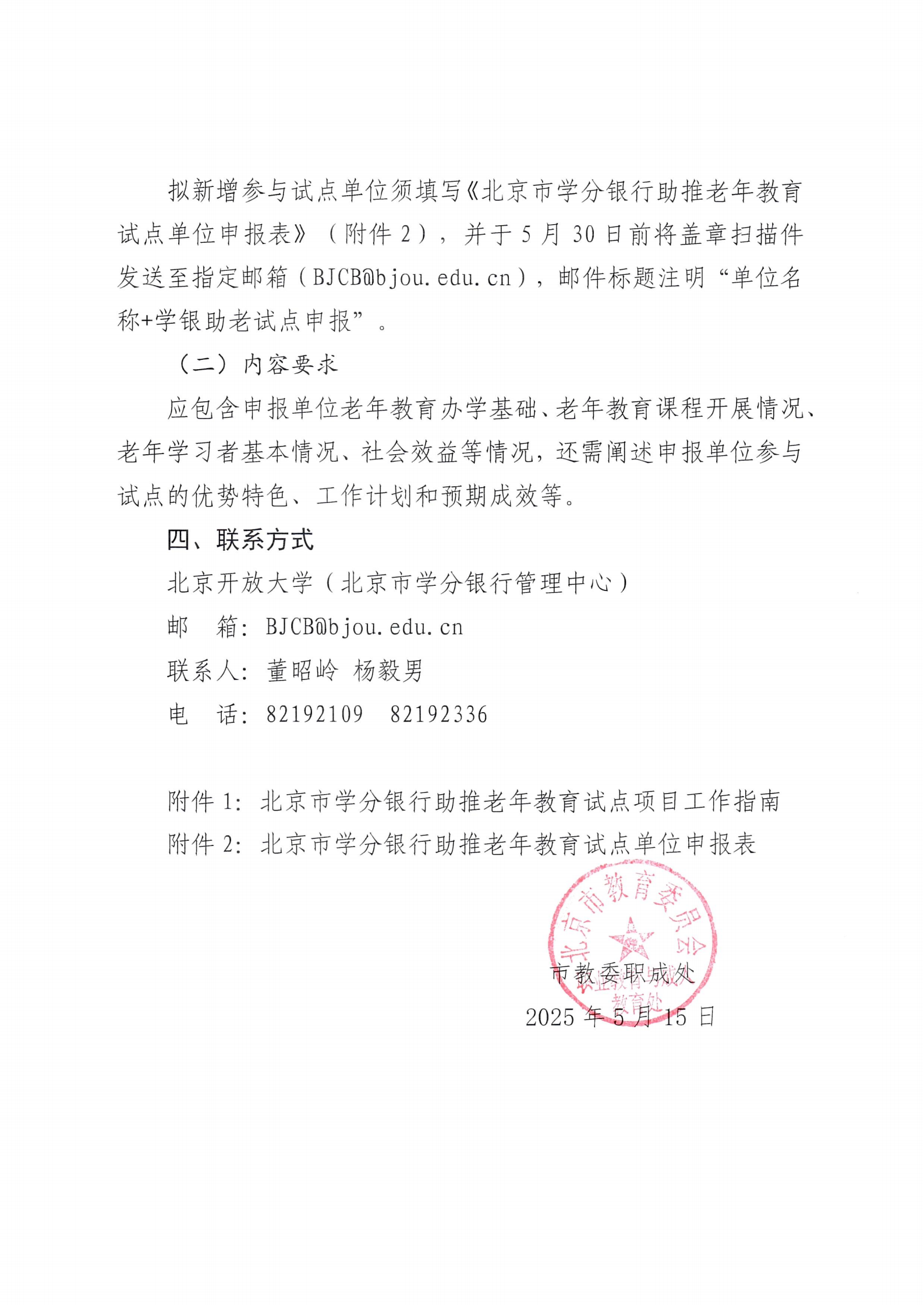 发布时间:2025-05-15 09:35:31 浏览次数:5167 发布方:北京市学分银行管理中心 所属栏目:[通知公告(门户)]