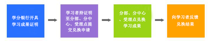 学习者积累在学分银行的培训项目(有证书)项目学习成果,可按照学分银行的有关规定到分部、分中心或受理点申请兑换为证书或其他形式的奖励。